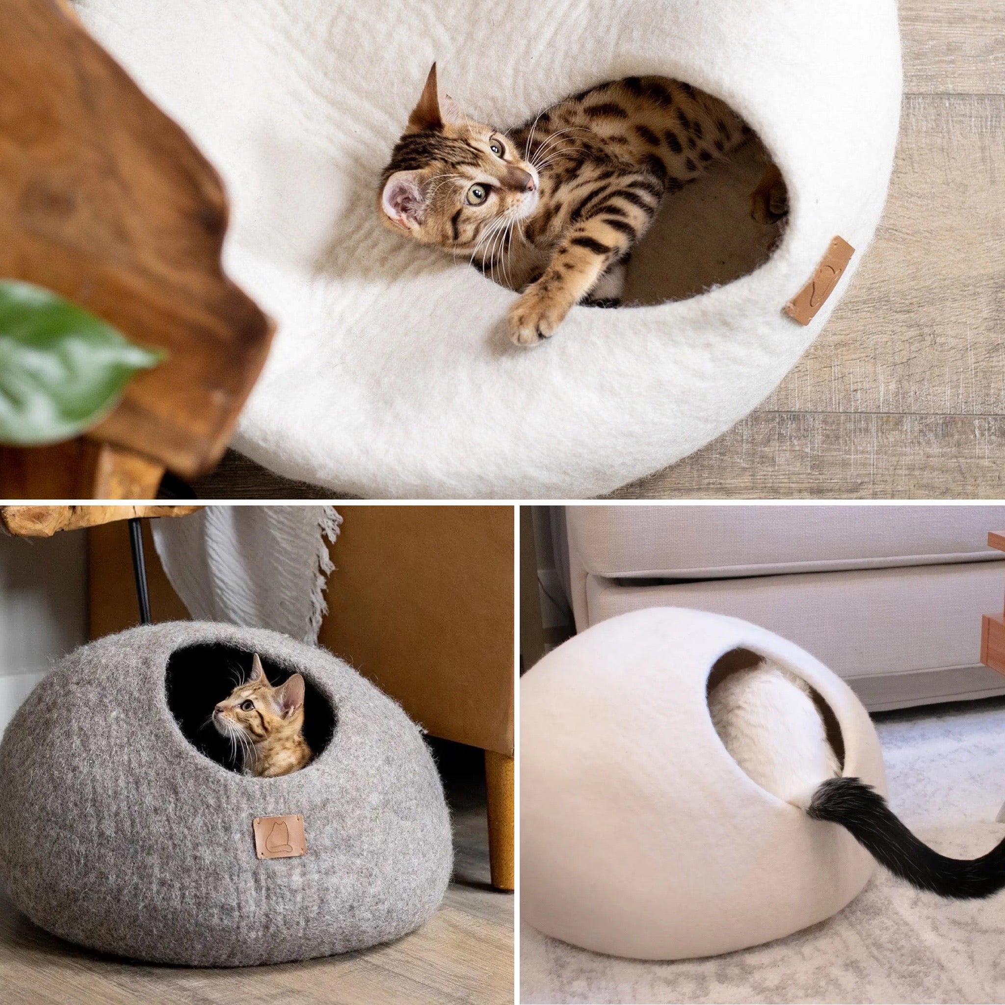 Våra handgjorda ullbäddar skapar en trygg och harmonisk plats för din katt – varm på vintern, sval på sommaren. Tillverkade av 100 % naturlig merinoull, med omtanke för både djur, människor och miljö. Läs mer om ullens fördelar här