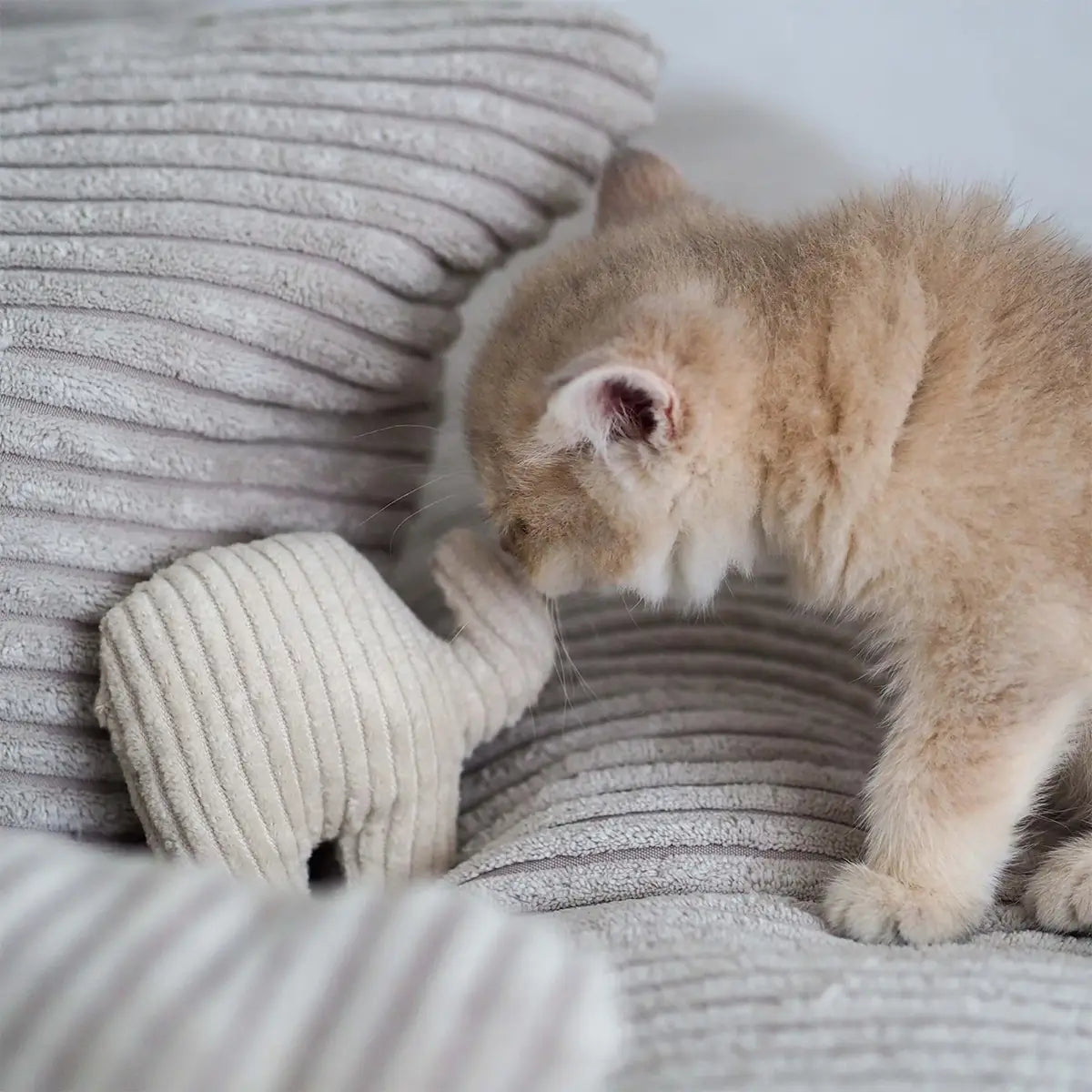 Den mjuka, naturliga strukturen och den diskreta beige tonen gör elefanten lika fin att ha framme som den är rolig för katten att leka med.