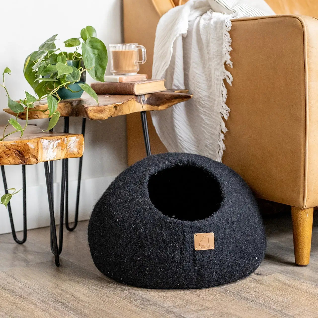Premium kattgrotta i merinoull - Nattsvart en elegant kontrast som smälter in i skandinaviska hem och modern inredning.